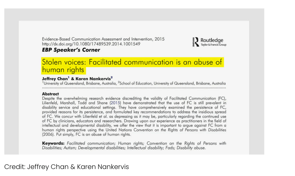 Les partisans de la FC appellent à un meilleur traitement des individus non verbaux, tout en ne tenant pas compte du fait que ces derniers ne peuvent tout simplement pas se conformer aux normes d’alphabétisation et de communication. Mais qui blâmer si des parents en détresse se retrouvent pris dans de tels systèmes de croyances ?